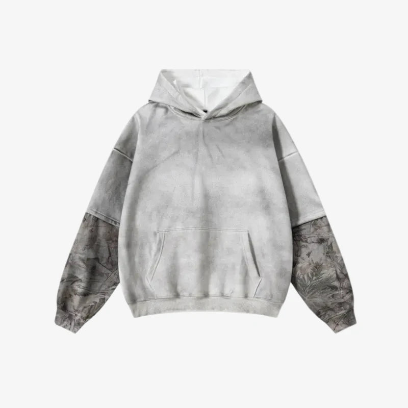 UNLOCK YOUR DRIP. The Lyren hoodie fuses urban minimalism with desert-inspired tones. Featuring a soft washed-gray body and heat-transfer camo sleeves, it creates the illusion of layered wear in a single elevated piece. Crafted for comfort, designed for movement, where high street meets quiet rebellion.